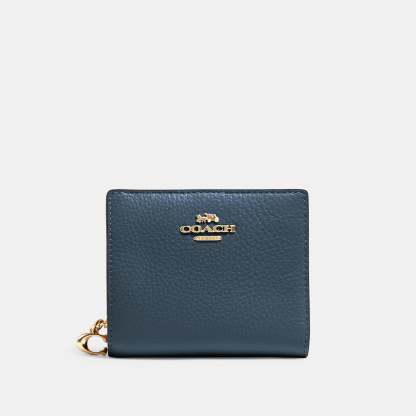 Refined pebble leather Three credit card slots ID window Full-length bill compartment Snap closure Outside zip coin pocket 4 1/4 (L) x 3 1/2 (H) x 1 (W) Style No. C2862