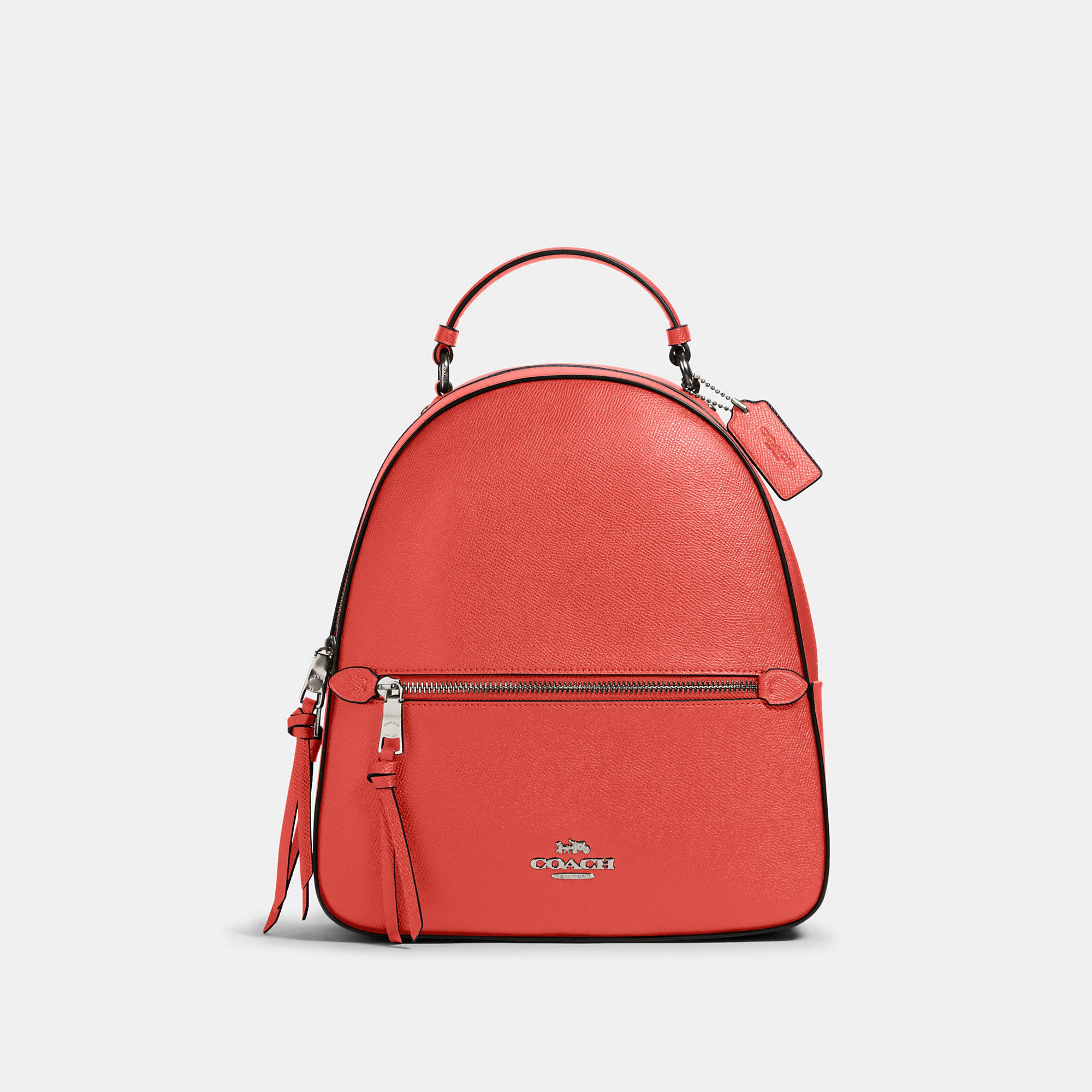 This crossgrain leather Jordyn backpack is perfectly sized for everyday and weekend adventures. Crossgrain leather Inside zip pocket Zip closure, fabric lining Top handle with 2In drop Outside zip pocket Adjustable shoulder straps 10 1/2In (L) x 12 1/4In (H) x 3 3/4In (W)