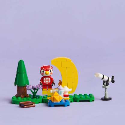 Kids build an outdoor scene inspired by the video game series. They can set up the telescope toy and role-play with a minifigure of Celeste the owl as she consults her astronomy book. Fans of the game will recognize the scene as they wish upon a shooting star then collect the fallen star fragments to decorate the crescent-moon chair.