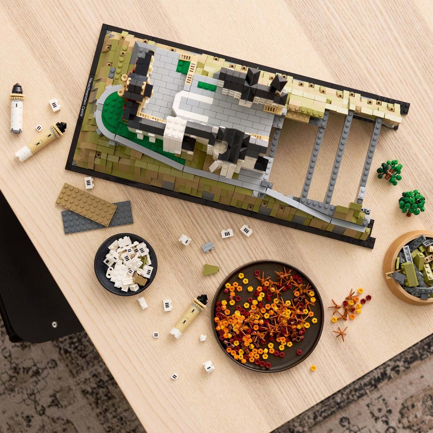 Dive into your passion for iconic landmarks with this collectible 3,455-piece LEGO® Architecture Neuschwanstein Castle (21063) building set for adults. Spend quality time building a display piece that also makes a great architectural gift for you or other history lovers. The build is full of surprises, from the exterior spires, turrets, courtyard, staircases and gabled roofs to the small interior builds. Plus, the foliage of the surrounding trees can be changed to depict a summer or autumn landscape. Serenity awaits as you build this detailed LEGO castle set.
