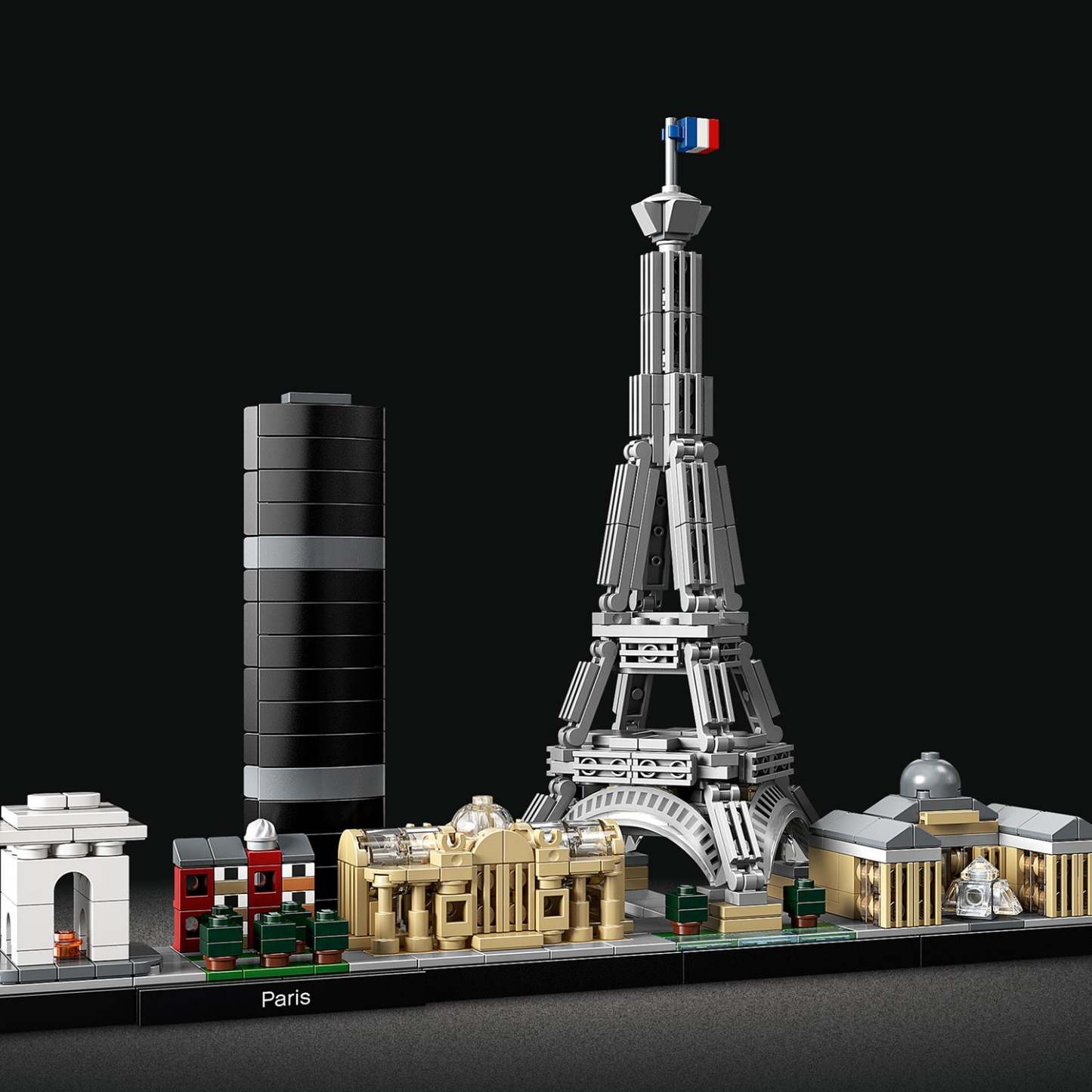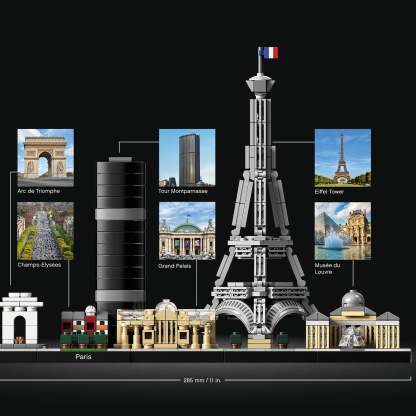 Bring together iconic Paris landmarks with this magnificent Paris skyline model. The 21044 LEGO® Architecture Skyline Collection set features the Arc de Triomphe, Champs-Elysées, Tour Montparnasse, Grand Palais, Eiffel Tower and the Louvre, and is finished with grass and tree areas and a decorative Paris nameplate. This set has been designed to deliver a rewarding and relaxing building experience to all with an interest in architecture, travel, history and design, and makes a truly “magnifique” centerpiece for the home or office. Each skyline model is scaled to give an accurate representation of the comparative size of the featured structures, with realistic color depiction.