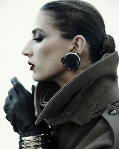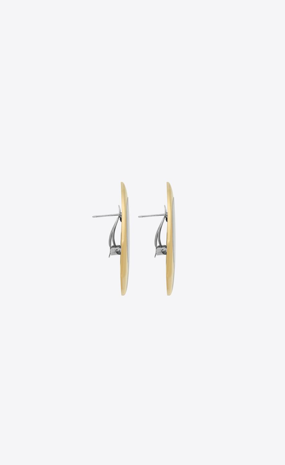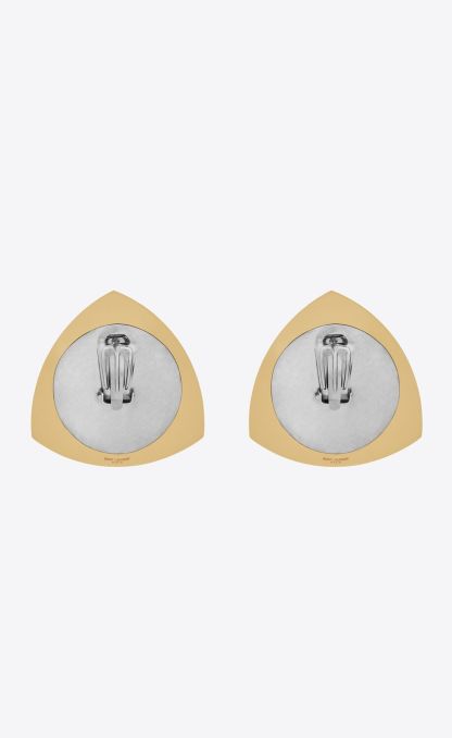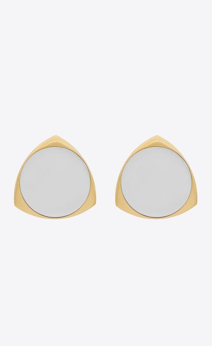 TRIANGULAR SHIELD EARRINGS WITH A CONTRASTING CIRCLE INLAY.